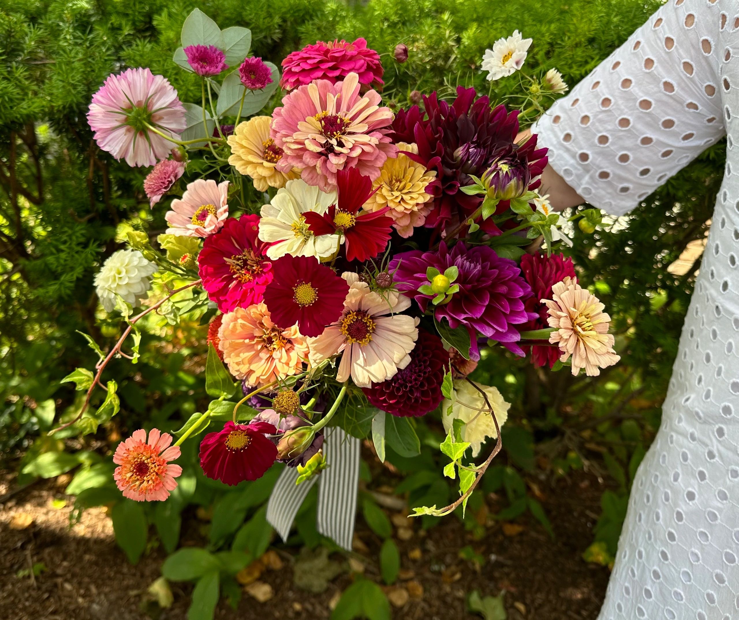 Our beautiful cut flowers include hand-tied bouquets, and DIY party buckets To Go. Sign your group up for a fun Cherry Hill Bloom Workshop &