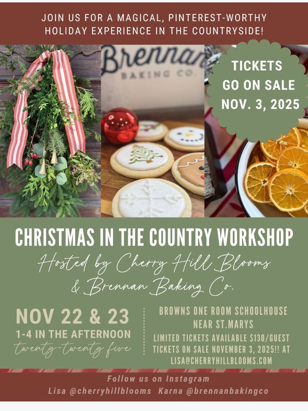 Our Christmas in the Country Workshop is back for Year Three! I'm thrilled to be partnering up with local baking Queen - Karna of Brennan Baking Co. (Follow her @BrennanBakingCo https://www.brennanbakingco.com/)
